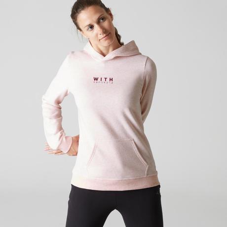 Dameshoodie 520 voor gym en stretching gemêleerd lichtroze