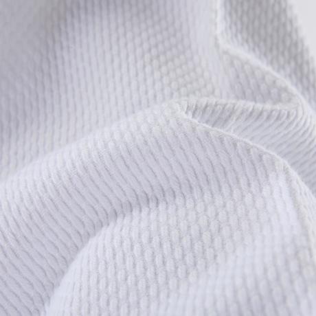 De dikte van een stof, en dus zijn gewicht, wordt uitgedrukt in gram per vierkante meter. Dit noemen we het gramgewicht. Om judo te beoefenen heb je een pak nodig met een resistente stof, waaraan getrokken mag worden maar die ook zonder probleem in de wasmachine kan! Daarom kozen we voor een samenstelling van 65% katoen en 35% polyester: deze stof is bestand tegen trekken en veelvuldig wassen.