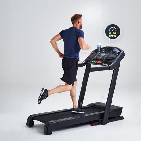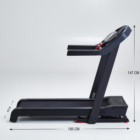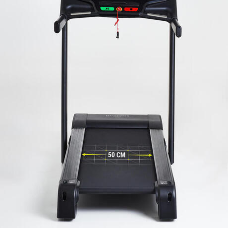 De T900 loopband produceert 52 dB, gemeten bij een snelheid van 10 km/u, zonder hardloper. Dit is een van de stilste loopbanden uit het Domyos-assortiment!