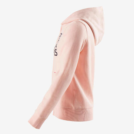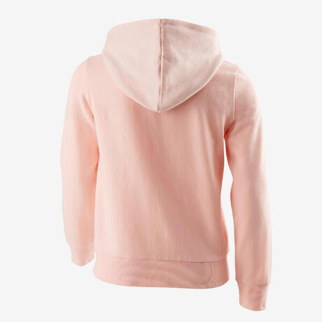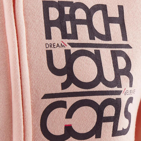 Een hoodie met rits, zakken, een print en afgewerkt aan de polsen en onderaan. Ideaal voor de opwarming en stretching bij gym op school of in een gymclub. Snel uit te trekken.