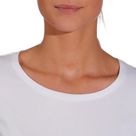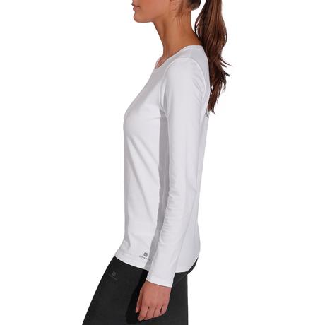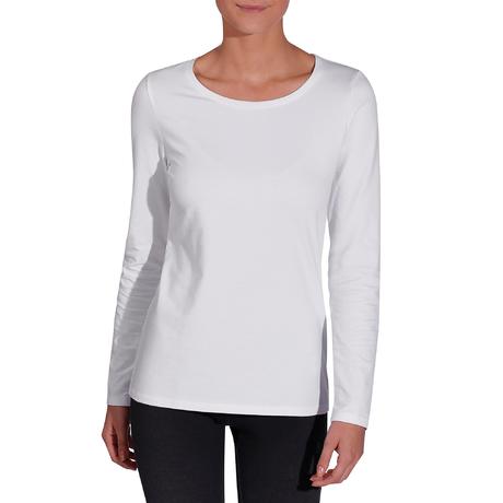 T-shirt 100 met lange mouwen pilates en lichte gym dames wit