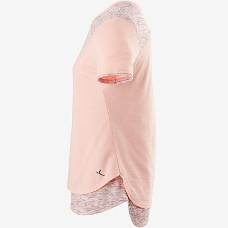 T-shirt korte mouwen ademend katoen 500 meisjes GYM KINDEREN roze AOP roze