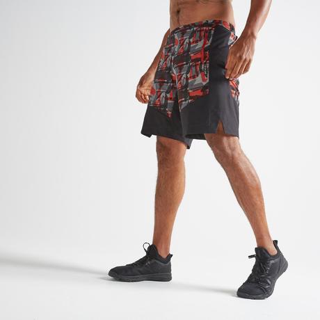 Sportbroekje fitness FST 500 voor heren, zwart/rood